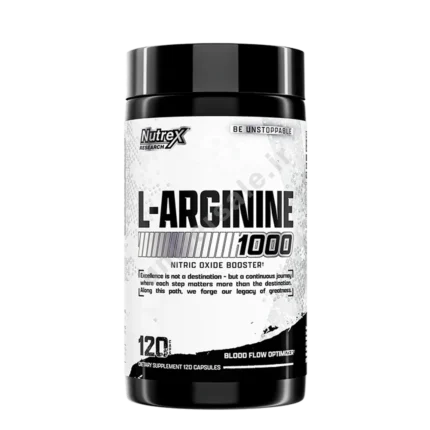 L-Arginine 1000 از برند معتبر Nutrex یک آمینواسید نیمه‌ضروری با دوز بالا برای افزایش جریان خون، پمپاژ عضلات و بهبود عملکرد تمرینیه. این مکمل باعث تولید بیشتر نیتریک اکسید (NO) در بدن میشه و به همین خاطر قبل تمرین حسابی حس قدرت و حجم عضلانی میده.